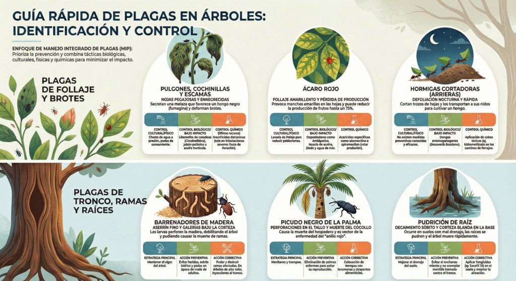 Capítulo 2: Plagas Invisibles (Picudo y Ácaro Rojo) Como detalla el reporte técnico de EcoArbórea, las plagas modernas no se ven a simple vista.